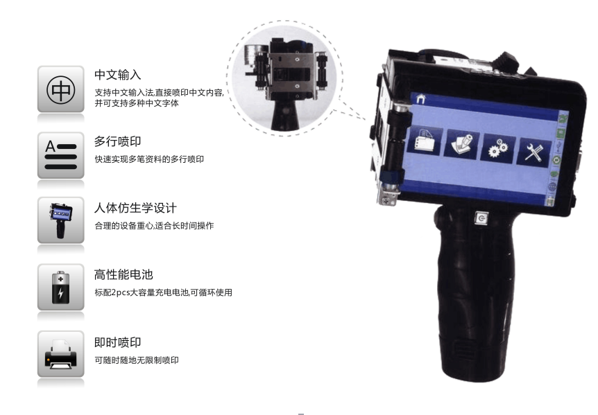 喷印距离:可根据需求自由更换滚轮调节喷印距离配备1.5mm/2.5mm/5mm滚轮