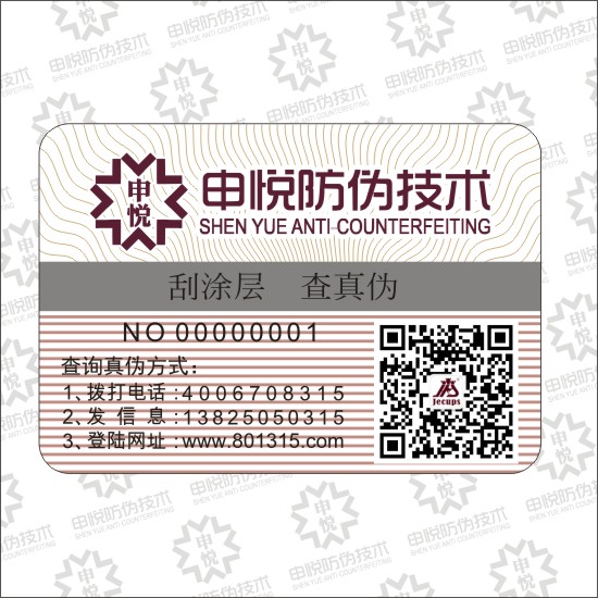 不干胶标签可做油墨防伪技术(荧光防伪、加温消失或变色、光变油墨、滴水消失等),数码防伪(俗称:电码防伪),二维码防伪(微信防伪),防窜货防伪。同时可做红包码、积分码等。