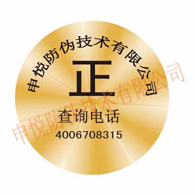 此种标识以氧化铝膜为主材,在标识表面可做上企业信息、LOGO、商标等,也可做上人头像或其他特殊图案、线条。激光膜分一次性和永久性膜两种,一次性膜其特点为贴在产品或包装后,揭开标识就被破坏,不可再使用。刮开式激光防伪标签、又叫刮开式电码标签即电码防伪标签,是应用电码防伪技术生产的一种防伪标签,消费者可通过标签表面的800电话、400电话、手机短信、网络等形式验证产品密码的真伪。